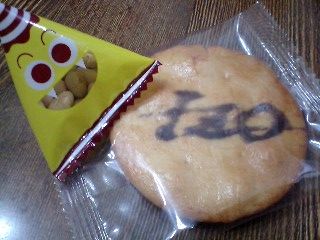 IZOの東京千秋楽にて頂きました煎餅と豆。